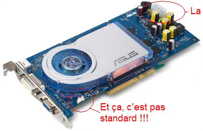 1-La prise d’alim du ventilo -->de la carte graphique<-- est une prise 3 broche non standard…