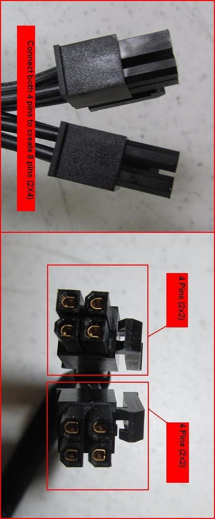 Eum… le 2x 4pins, c’est pour la compatibilité avec les mobo qui ont juste 1x 4 pins. Si tu met les deux, ca va marcher normalement puisque c’est 2x du +12v…