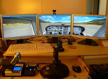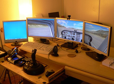 pas moins de 13 écrans pour jouer à Flight Simulator (et j’sais pas combien de PC en réseau :MDR )
