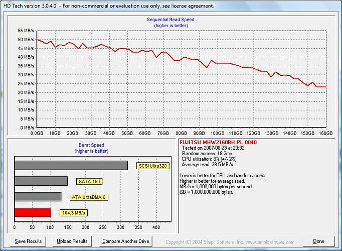 un premier test HDtach balaye mes craintes quant aux performances de la bete :