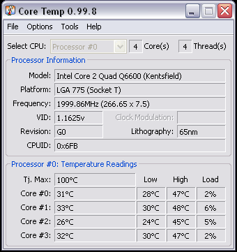 avec le ventirad intel qui deja ce fixe mal sur la CM, la T° ne descendait jamais sous les 50° et montait meme a + de 90° dans les longues phases d’utilisation intensive, par contre au demontage j’ai remarqué que la poussiere c’etait bien installé et surtout que la pate thermique c’etait trés mal étalé (la faute au systeme de fixation qui n’ecrase quasiment pas la base sur le proc (et aussi de ma faute car la pate thermique etait mal répartie)).