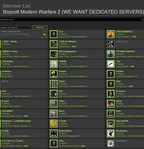 Edit: J’avais déja vue la liste du groupe boycott organisé sur Steam… la moitié qui sont in-game sur MW2… aberrant et pitoyable… :pfff: