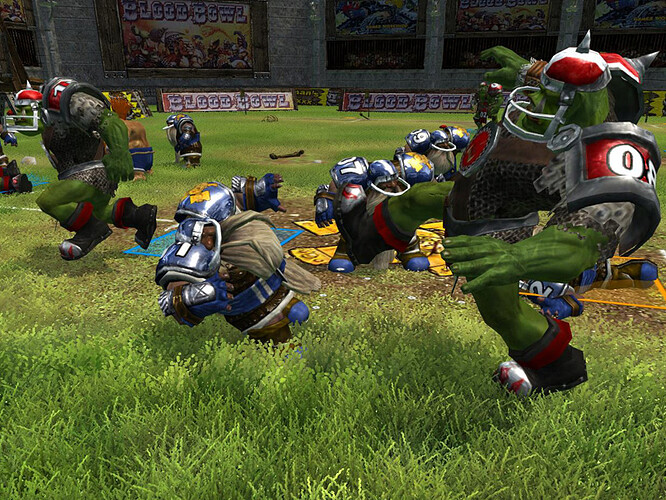 Les Ogres : d’une puissance monstrueuse mais d’une bêtise crasse, les Ogres auront bien du mal à garder le ballon, préférant taper sur leurs adversaires ou gober les mouches au milieu du terrain. En complément ils jouent avec des Snotlings, de toutes petites bestioles qui pourront s’occuper de la balle, mais tomberont comme des mouches au moindre blocage.