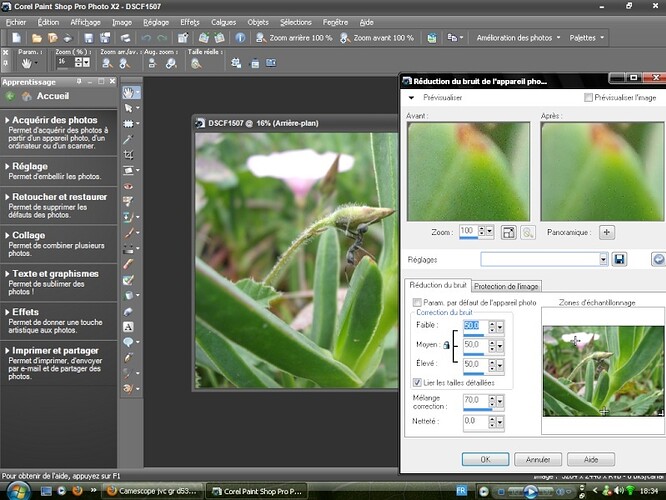 Une image montrant « ce qui se passe » à un certain moment sur ton PC comme l’exemple ci-dessous pris lors du traitement du bruit d’une photo à l’aide de Corel Paint Shop Pro Photo X2