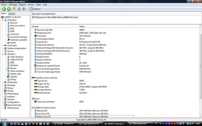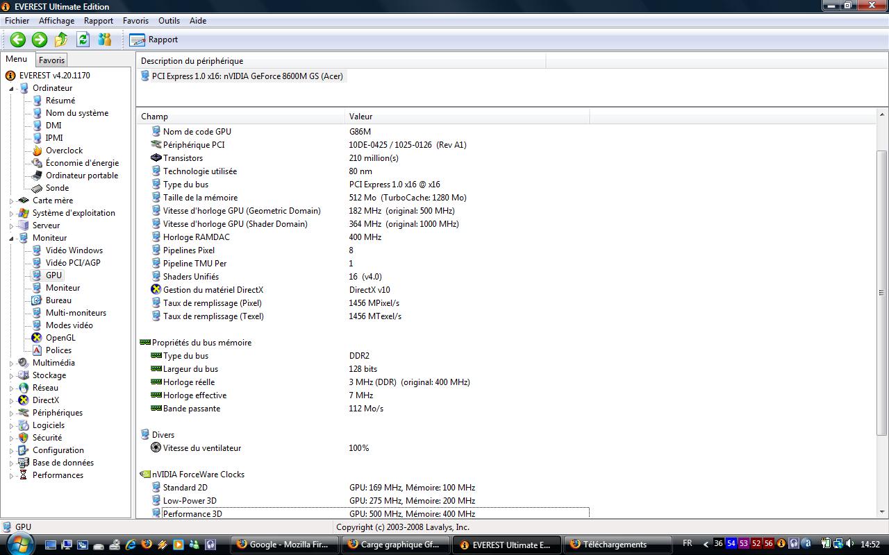 De plus les 8600m GS sont souvent « castré », j’ai remis les bonnes valeurs pour le GPU pour avoir de bonnes performances.