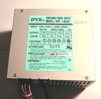 tu regardes bien l’alimentation, a l’interieur du PC, tu as un petit tableau avec des indications en V (3.3V, 5V et 12V) et en A, sur une des faces, donne le nous (par photo numérique ou par recoopiage) les valeurs de ce tableau, il s’agit d’une valeur sure