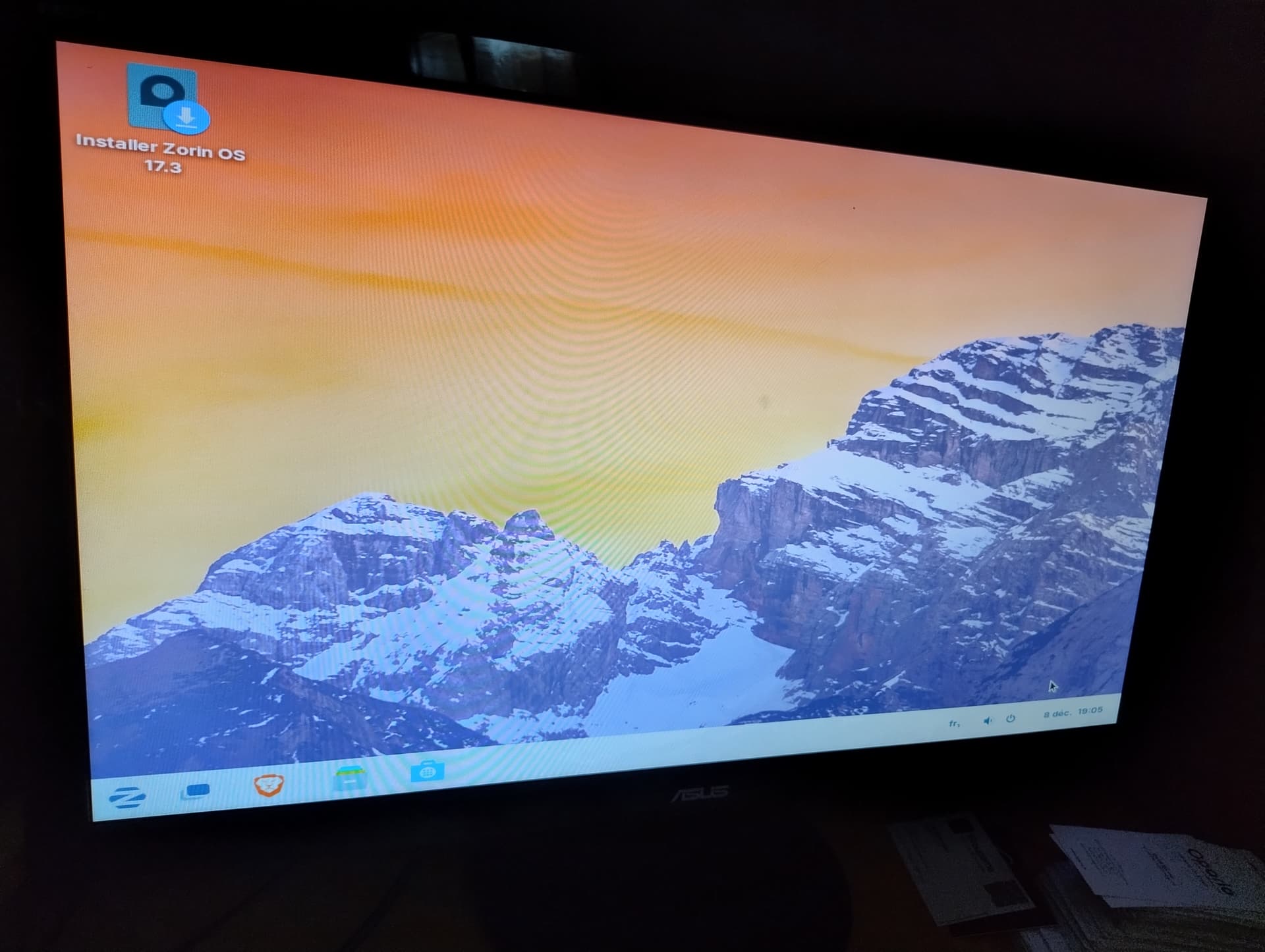 Bon, alors apparemment, c’était un problème de driver de la carte graphique qui me faisait des misères. Après une installation mouvementée de zorin, car il demandé de redémarrer, et, à chaque fois, il me planter au redémarrage en s’éteignant, je suis arrivé au moment où Zorin m’a proposé un nouveau pilote pour la carte graphique. Mise à jour, redémarrage et là, miracle, pas de plantage, et belle image ajustée. C’est juste incroyable cet histoire.