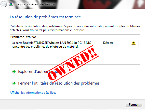 Cependant, un autre problème persiste, c’est ma carte réseau. Je ne détecte pas les réseaux wifi (aucun problème en filaire par contre) et j’ai un problème lors de l’installation du drivers spécifique. Voici les screen en balise spoiler pour pas géner :
