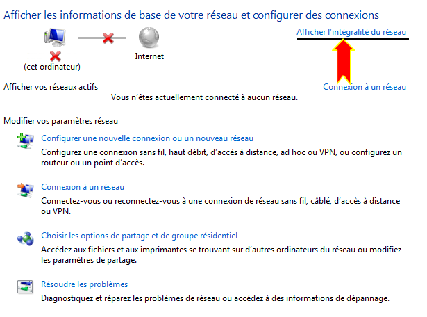 Ensuite voici l’icone de mes connexions quand je débranche le cable ethernet :