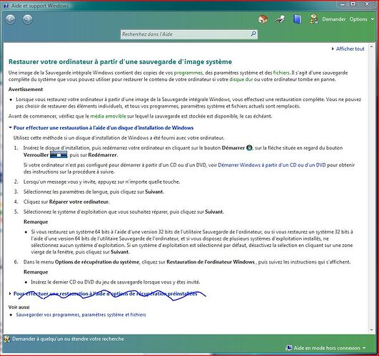 Surprise (due à mon manque d’observation), la restauration de l’intégralité de mon ordinateur ne se fait pas depuis ce fameux « centre » !
