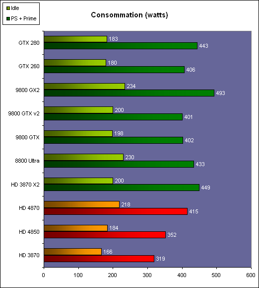 Quand à la carte graphique je te conseillerais d’attendre 1 mois voir moins pour la sortie des nouvelles HD58** tu auras peut être plus puissant pour une consommation plus basse et un prix raisonnable, sinon la HD4870 ma paraît être un bon choix.