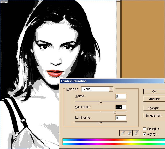Voilà ce que j’ai fait : Une désaturation puis une isohélie: