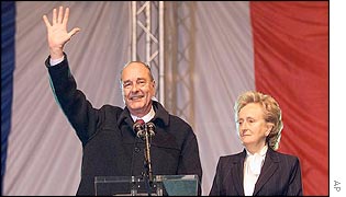 jacques chirac qui fais coucou a tout le monde avec manan bernadette a sa droite