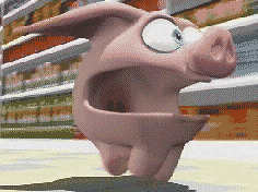 la photo d’un petit cochon qui court dans un supermarché ![]()