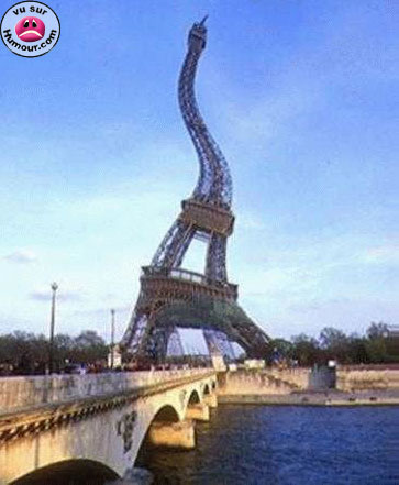 Je veux un montage photo marrant avec la tour eiffel. ![]()