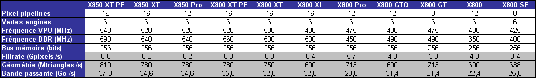 Un dernier truc : je ne suis pas sûr du classement du X850Pro…