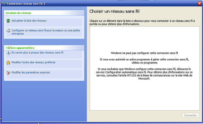 Lorsque j’essaie de configurer le réseau sans fil par windows il ne reconnait rien: