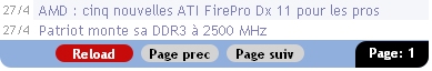 Cette 1ère page est la seule qui n’est pas gardée en mémoire. Quand vous revenez au début, que ce soit via le bouton « début » ou en faisant « page prec » en étant sur la page 2, l’actu est rafraichie (pour gérer les nouvelles actus qui ont pu apparaître entre-temps). Inutile donc de faire un « reload », c’est fait automatiquement. A noter que revenir en 1ère page remet à zéro la mémorisation de pages du panneau visitées (cad que la navigation ne sera à nouveau plus instantanée la 1ère fois que vous visitez ces pages).