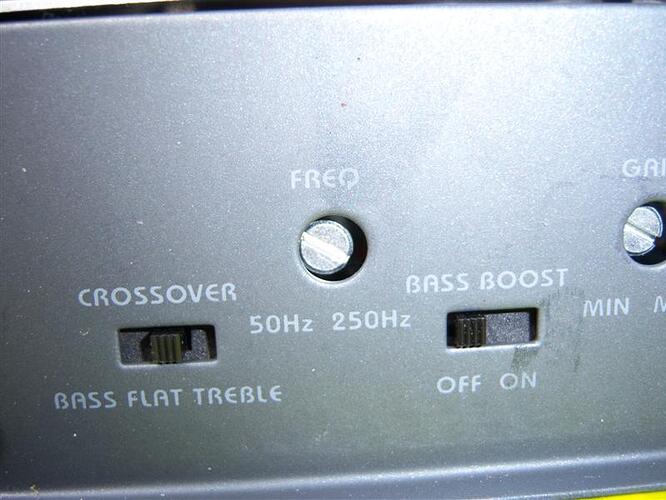 Au départ laisse le gain sur une valeur moyenne, et en fonction de tes diffuseurs , tu règles le cross-over sur Bass si tu branches un sub , sur flat si des normaux ( genre 3 voies) ainsi toutes les fréquences passent ....