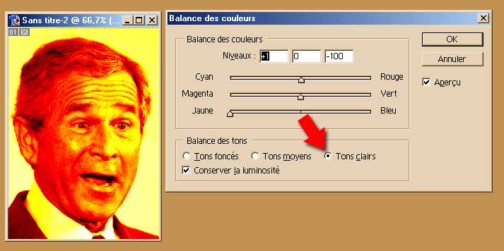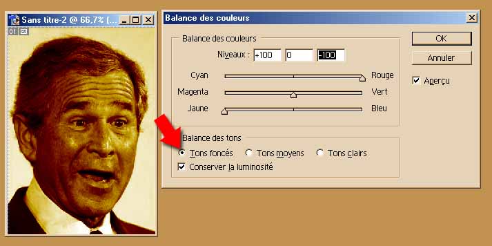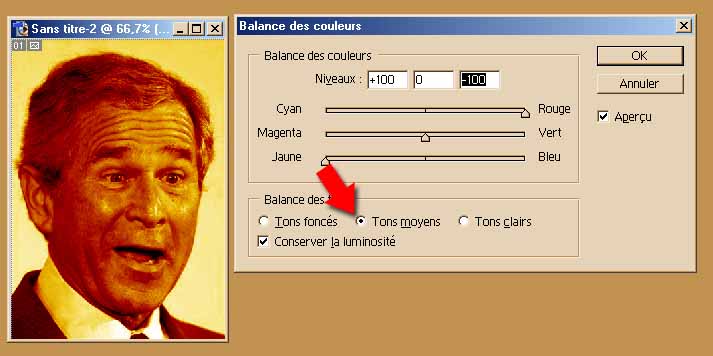 Tu désatures l’image et tu vas dans Image > Réglages > Balance des couleurs