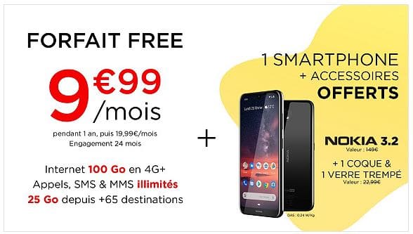 A quelques heures de la rentrée scolaire, nous vous rappelons qu’une vente privée Free Mobile est toujours disponible sur le site Veepee.fr. Cette offre propose le forfait Free 100 Go à 9,99€ par mois pendant 1 an (au lieu de 19,99€) ainsi qu’un smartphone Nokia 3.2 et des accessoires offerts pour toute nouvelle souscription!