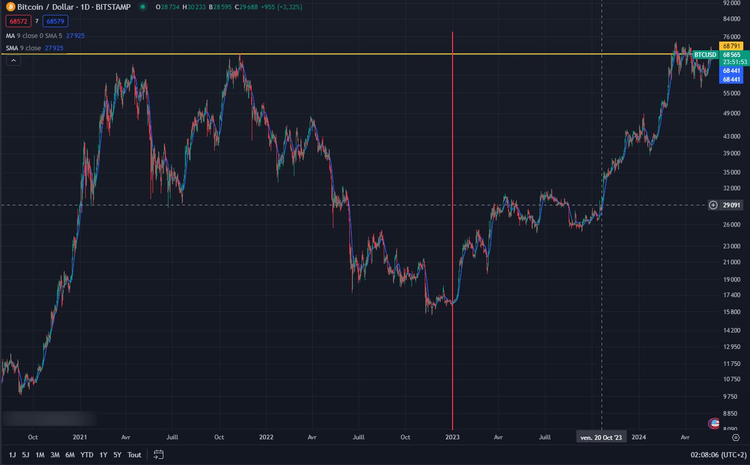 Genre le BTC est adopté en masse et de façon exponentielle depuis qu’il y a des ETF dessus ? Première nouvelle Rien n’a changé fondamentalement depuis les ETF BTC : ça reste avant tout un placement financier, quasiment personne ne l’utilise comme une monnaie.