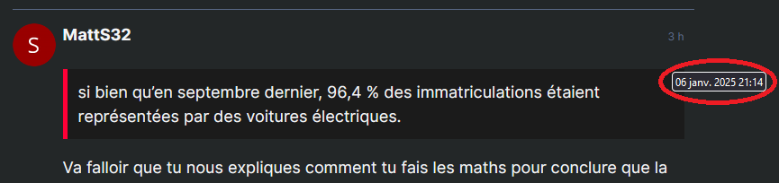 Va falloir que tu nous expliques comment tu fais les maths pour conclure que la majorité des ventes se fait en thermique alors qu’elles représentent 3.6% des immatriculations… Tu considères que plus de 90% des électriques ont été immatriculées sans avoir été vendues ?