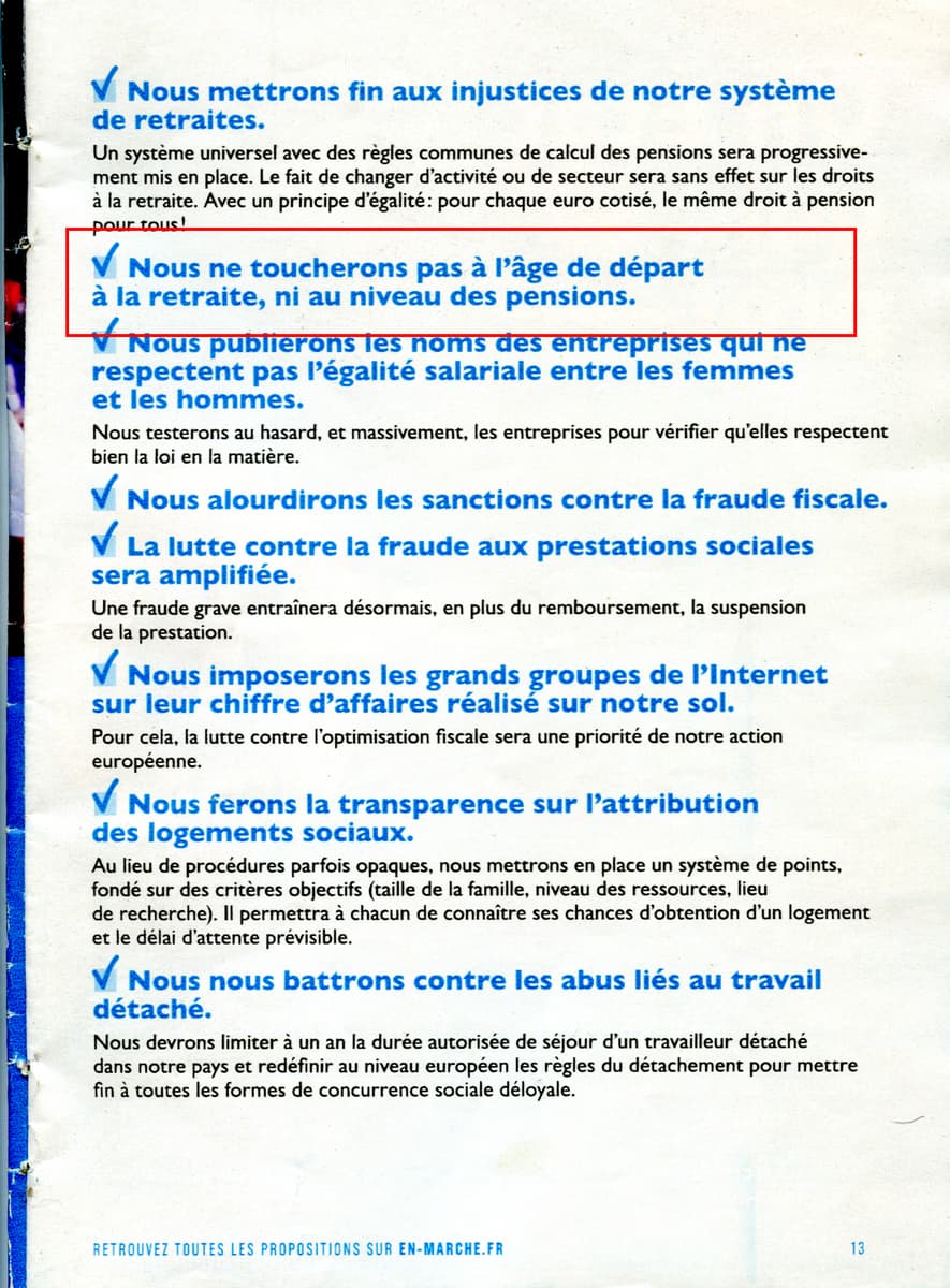 Mais, comme je l’ai dit, j’ai toujours compris que Macron voulait passer la retraite à 65 ans, pour moi ça a toujours été très clair, c’était même une des mesures phare. Les modalités restaient à définir, mais pas la finalité.