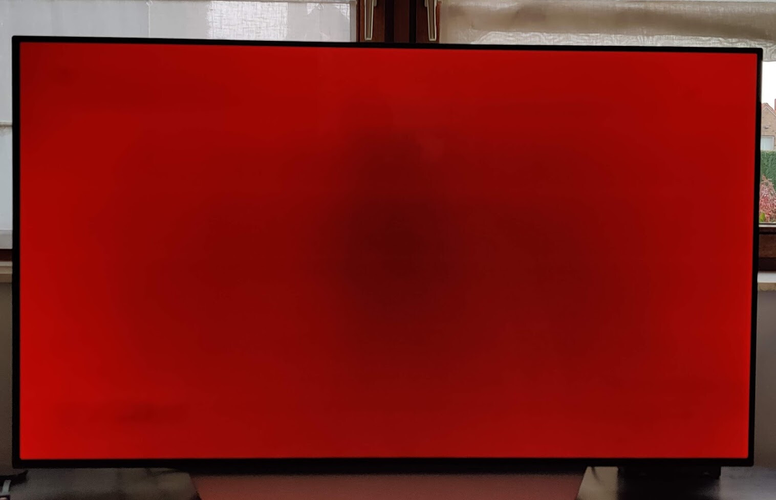 C’est ça du burning sur de l’oled. Ici une LG C7 qui a +/- 3 ans. Les burns sont là depuis plus d’un an. Il y a des traces de logo (ok mes enfants ont sans doute regardé trop la même chaine) mais il y a surtout un gros burn au milieu qui est un burn d’usure. C’est uniquement sur le rouge, le bleu et vert sont nickels.