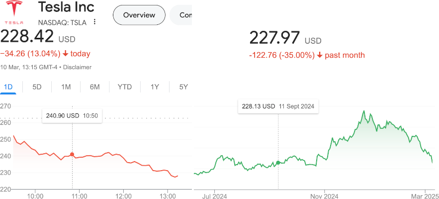 La chute de TSLA continue, c’est un crash là : -20$ à l’ouverture, -34$ à 228$ en ce moment ![]()