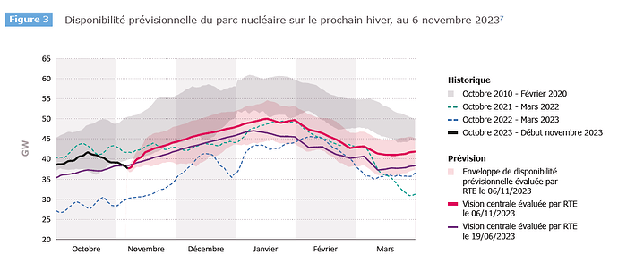 Par rapport à la même période de l’an dernier, on a environ 10 GW de capacité disponible supplémentaire, et on devrait avoir une disponibilité comparable à celle de l’hiver 2021-2022 :