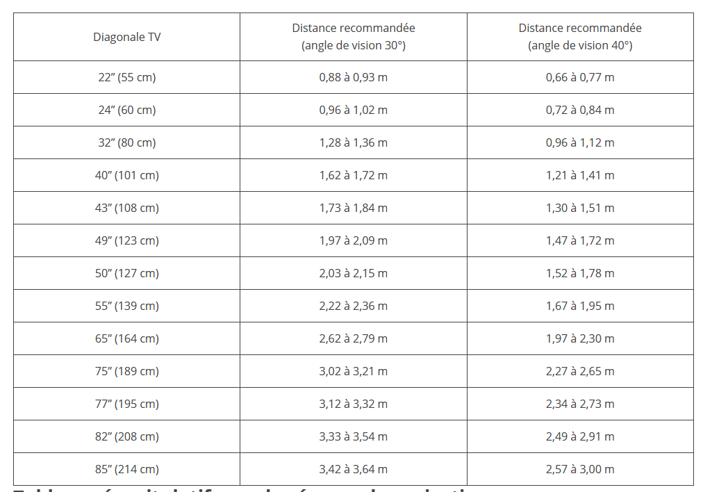 Mais n’importe quoi c’est le contraire, plus la définition augment plus tu peu te mettre plus près, ainsi si un Full HD de 55 pouces c’est 4 mètres et plus, un 4K de 55 pouces c’est du deux mètres.