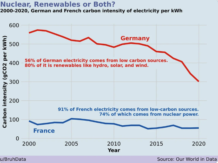 La France est passé sous 100g il y a plusieurs décades. Nous avons décarbonné rapidement; les Allemands non.
