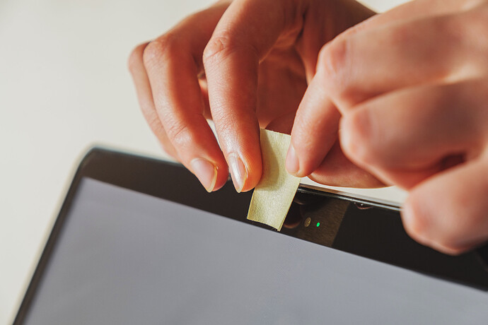 plutôt que le scotch j’ai opté pour des petit webcam cover les 10 pour 5€ adhésif avec un cache coulissant j’ai même du mal à comprendre pourquoi tous les portables n’en sont pas équipés d’origine. Ça tient parfaitement on cache si on veut et c’est pas ça qui va faire exploser le prix du pc.