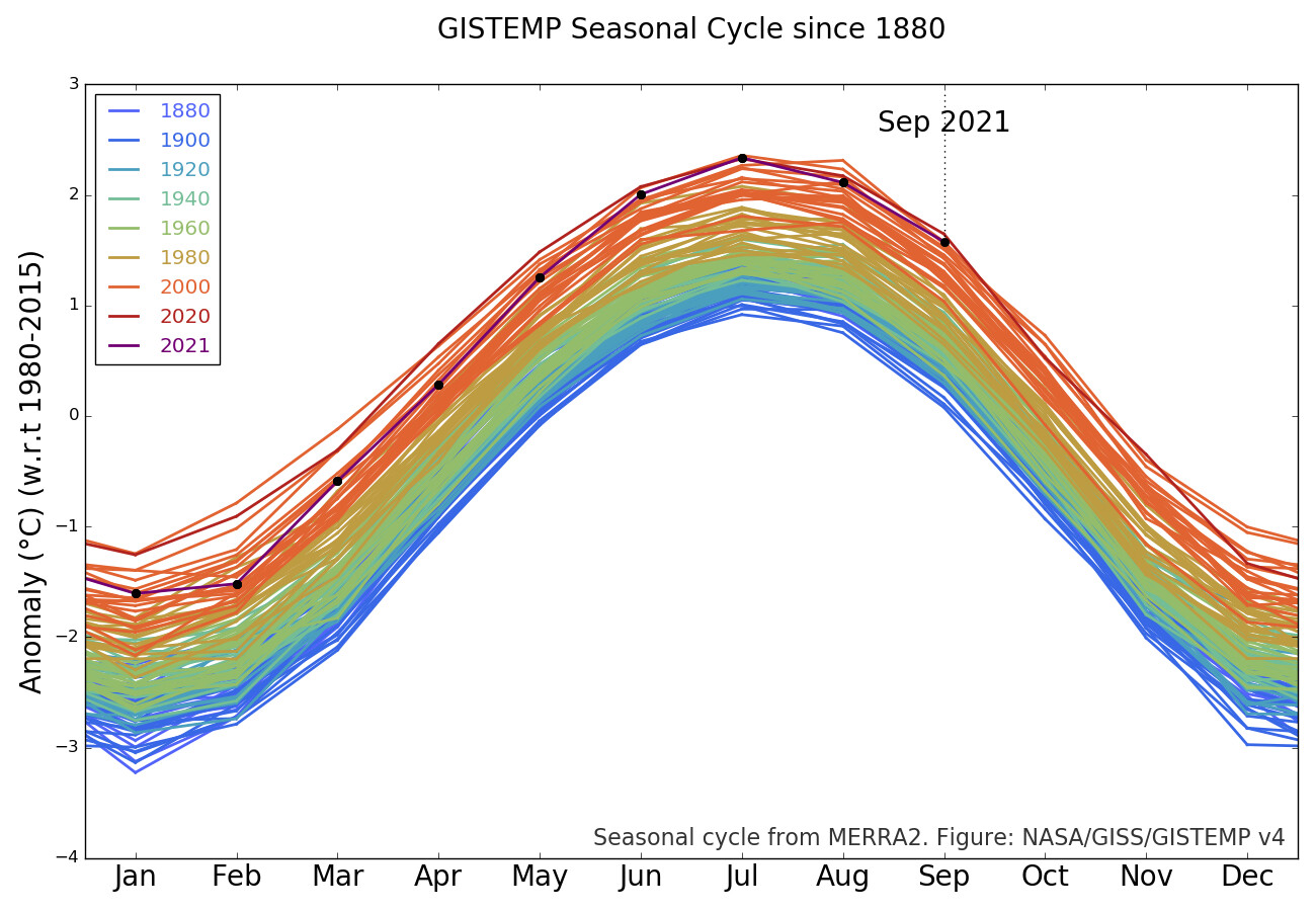 Une version simplifiée pour ceux pas habituée à lire ce genre de graph chaque ligne représente une année; rouge = plus récent, bleu = plus ancien; si une ligne A est plus haute qu’une autre B, c’est que l’année A est plus chaude que B :