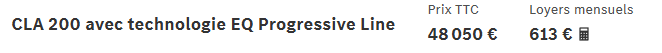 Quand a la Merco électrique, je ne connais pas le prix, mais j’imagine que en leasing ça doit tourner à 500 € / Mois minimum ce genre de bagnole.