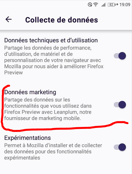 Et le Firefox preview sur Android bien rapide mais pourquoi l envoie de données à une régie publicitaire est activé par défauts ?