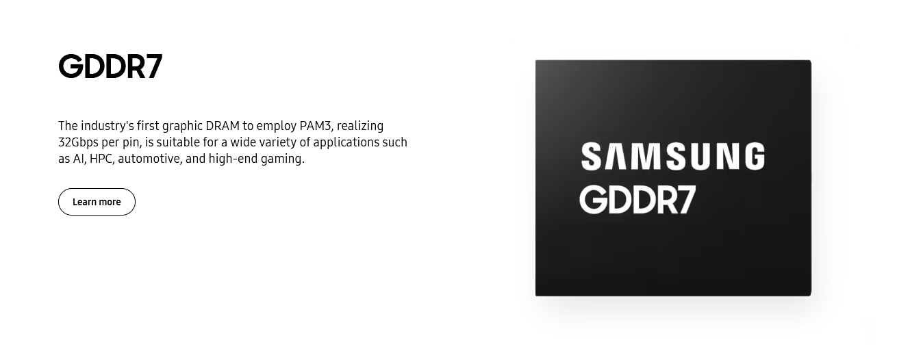 Voilà par exemple une référence de puce GDDR7 de chez Samsung : https://semiconductor.samsung.com/dram/gddr/gddr7/k4vaf325zc-sc28/