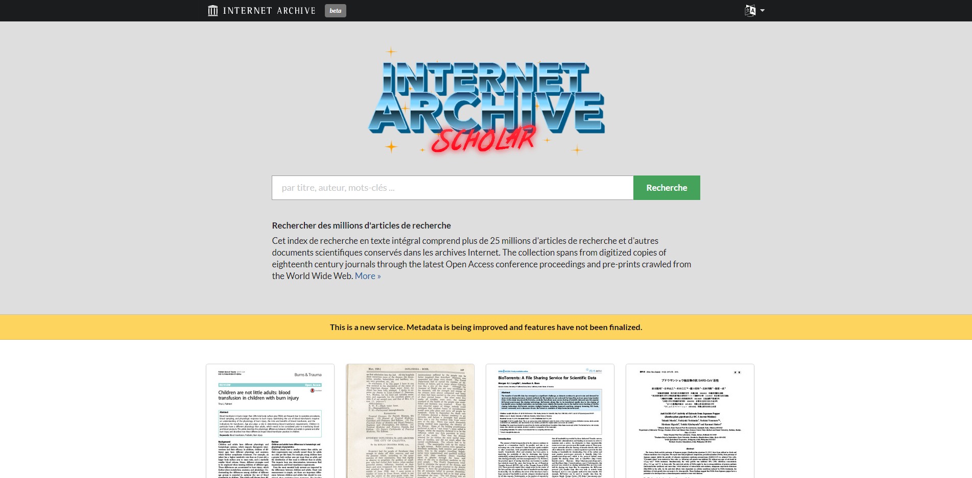 La bibliothèque numérique Internet Archive lance son propre moteur de documents scientifiques recueillis, comme le veut sa philosophie, dans les archives du Web.