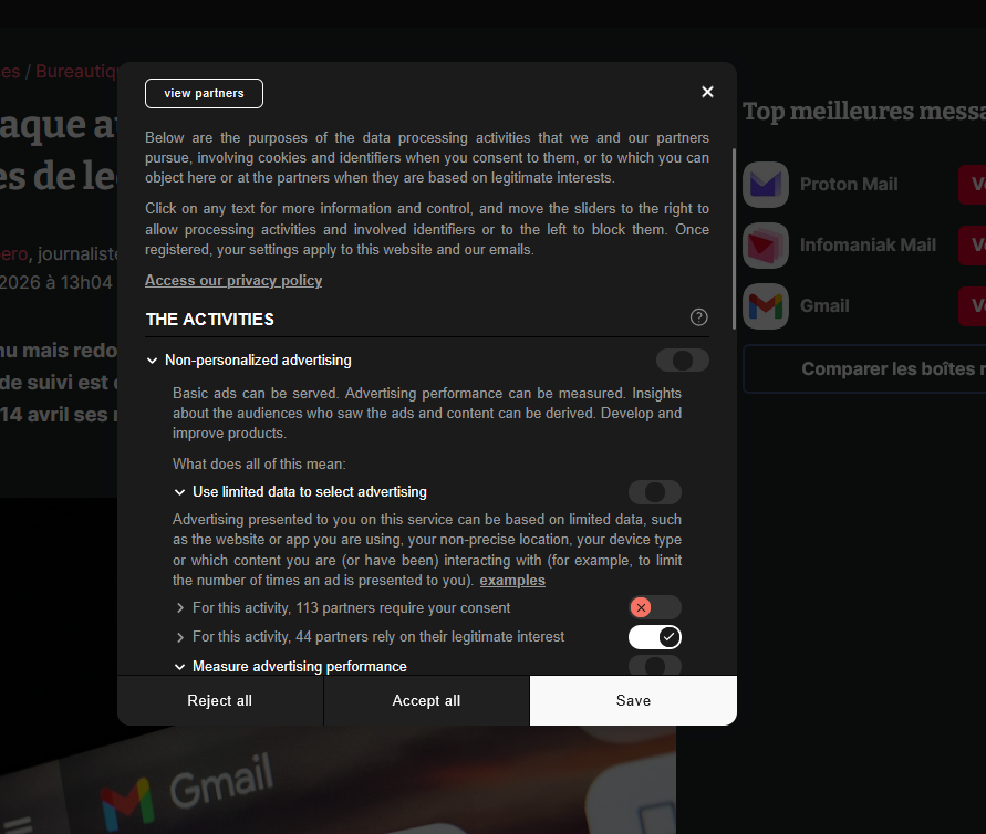 Au moins y’a un « reject all ».