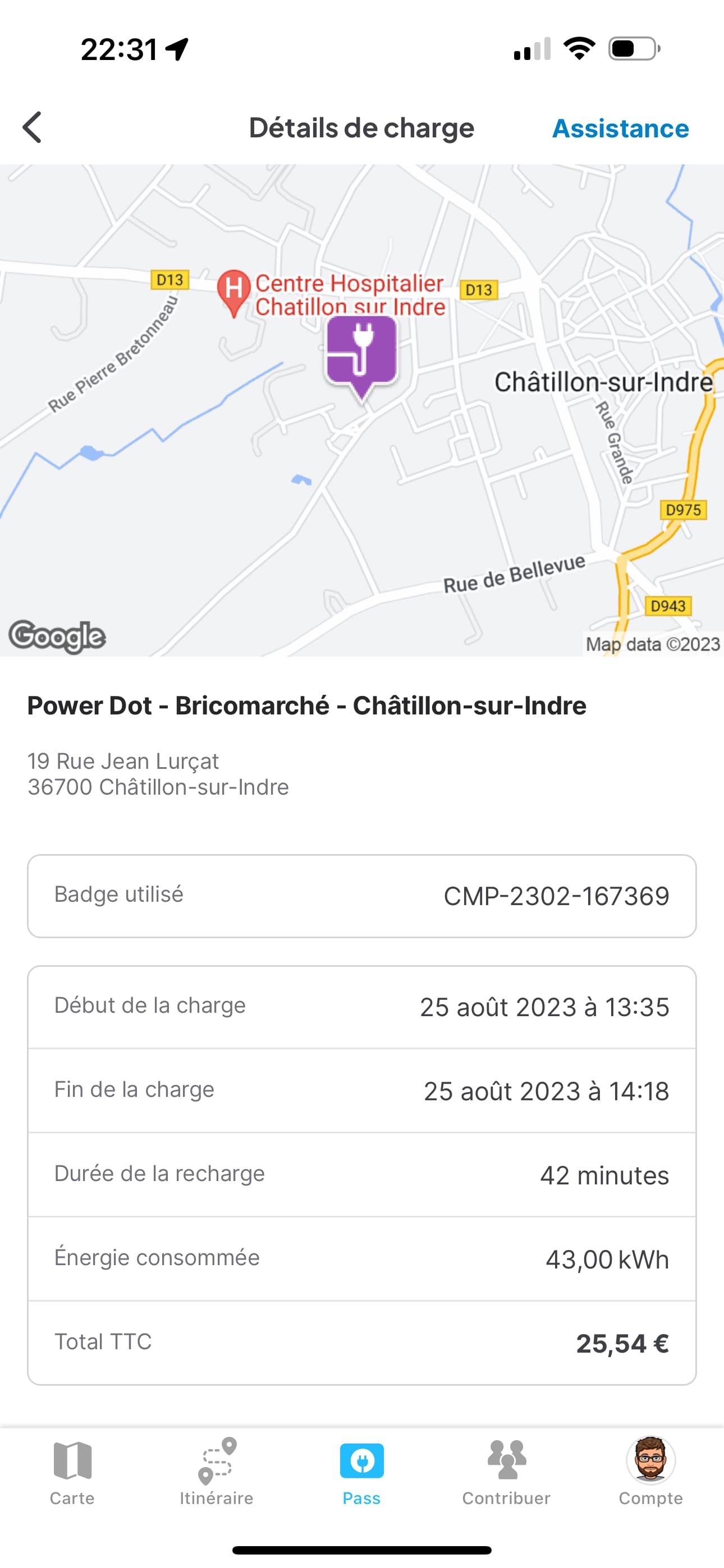 On va prendre un exemple concret : traversée de la France, Lyon > Rennes cet été pour rentrer de vacances, je suis parti de Lyon a 100%, j’ai pris les nationales car j’avais le temps, j’ai fait 1 charge, de 40 minutes a mi route environ, pendant ces 40 minutes, j’en ai profité pour manger. je te laisse aussi regarder le cout. traverser la France m’a couté 25€ pour recharger les 2 tiers de la batterie. Je suis arrivé avec plus de 20%. sur les 12 derniers mois, j’ai roulé 40000km, j’ai du dépenser environ 500€ de « carburant », j’ai la chance de pouvoir charger gratuitement au bureau.