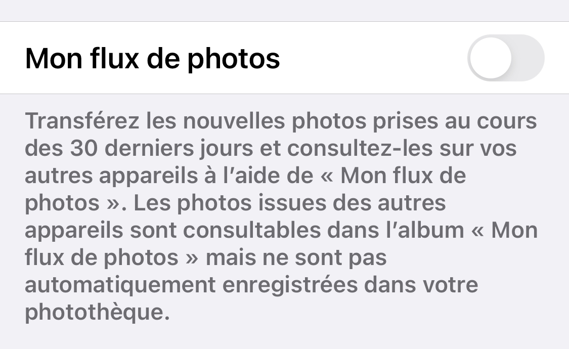 Réglages>photos>Mon flux photo
