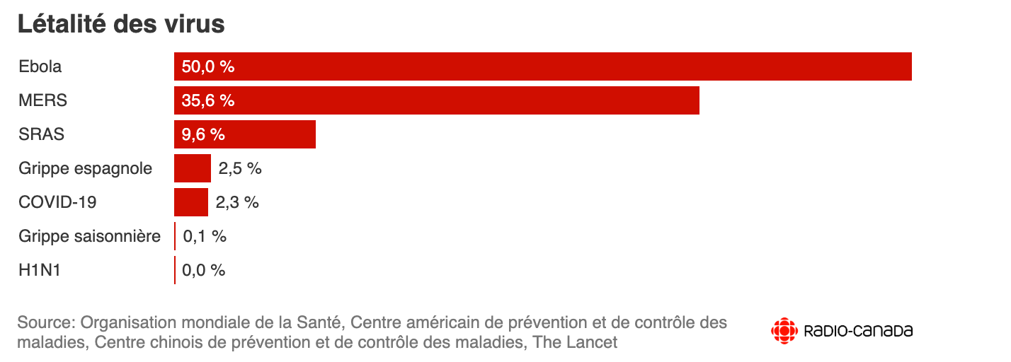 Le taux de létalité de la grippe saisonnière se situe aux alentours de 0,1% d’après les « dingues » du CDC et de l’OMS… Pour le moment (important le pour le moment ça peut fortement évoluer avec les tests, etc.) covid-19 est aux alentours de 2,3% selon les mêmes illuminés