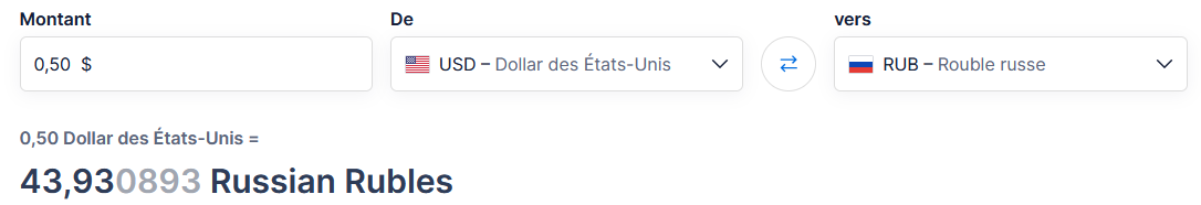 Un Euro vallant actuellement environ 95 roubles, on en est pas loin des 50 cents ^^