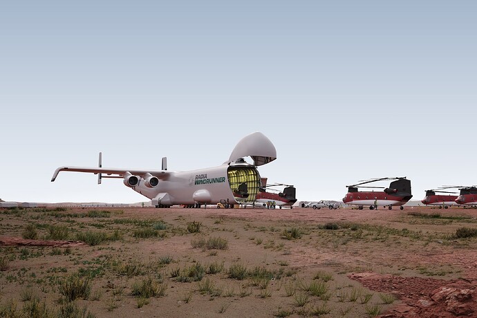 En outre il serait capable de se poser bien plus court qu’un An-225, à peine 1800 mètres contre 3000, et comme indiqué dans l’article, il peut le faire sur une piste en terre, alors que l’An-225 a besoin d’une piste en dur. Là encore, c’est un gros avantage compte tenu de sa destination, puisque ça permettrait de se poser plus proche des sites d’installation des éoliennes.