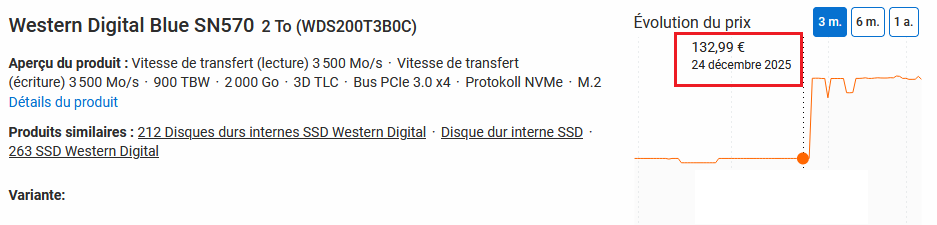 Le but de mon message c’est de montrer l’ampleur du phénomène, ce n’est pas de dire que ce SSD coûte autant partout (ni même que ça coûte pas moins cher ailleurs) mais qu’il y a des vendeurs qui ont fait des augmentations de malade genre plus de 200%. Si quelqu’un m’avait demandé conseil, évidemment je lui donnerais pas cet exemple ![]()