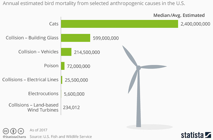 Mais on est sur 230 000 morts d’oiseaux par éolienne rien qu’aux états unis ou ils tiennent un compte précis.