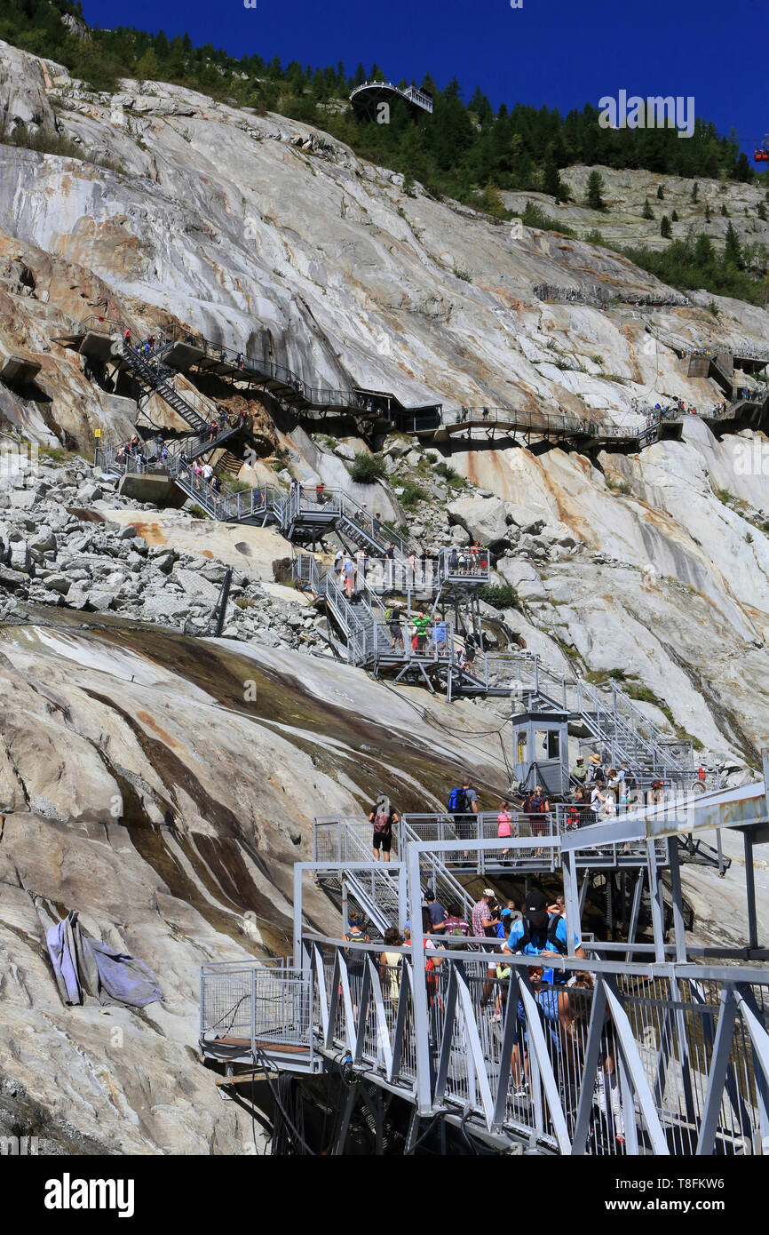 Il existe toujours, oui. Mais avant il était accessible depuis le Montenvers avec seulement quelques marches. Aujourd’hui, ils ont dû rajouter des dizaines de mètres de passerelles :