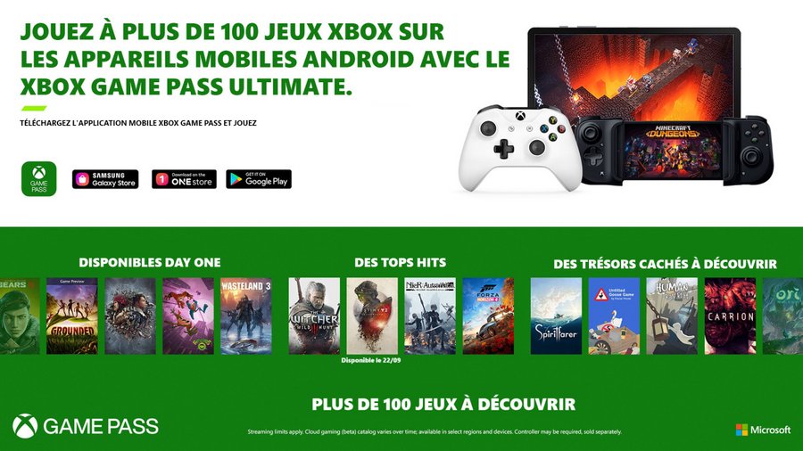 Dès demain, si vous êtes abonnés au Xbox Game Pass Ultimate, plus de 150 jeux seront jouables sur votre terminal Android grâce à l’ajout du service de Cloud gaming anciennement nommé xCloud.