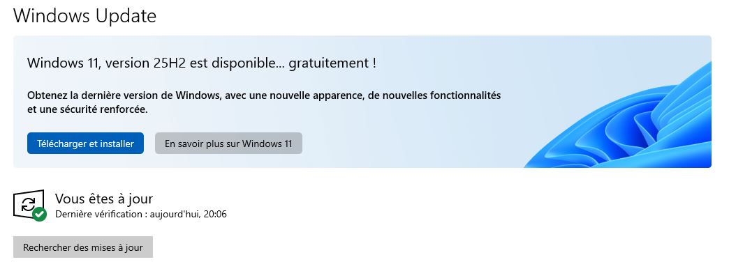 Pour le moment j’ai bloqué les mises à jour pour un PC ‘’désactivé’’, car je soupçonne que Microsoft met un truc Type (si tu ne passe pas à W11 ton PC reste bloquer ou autre) !!!